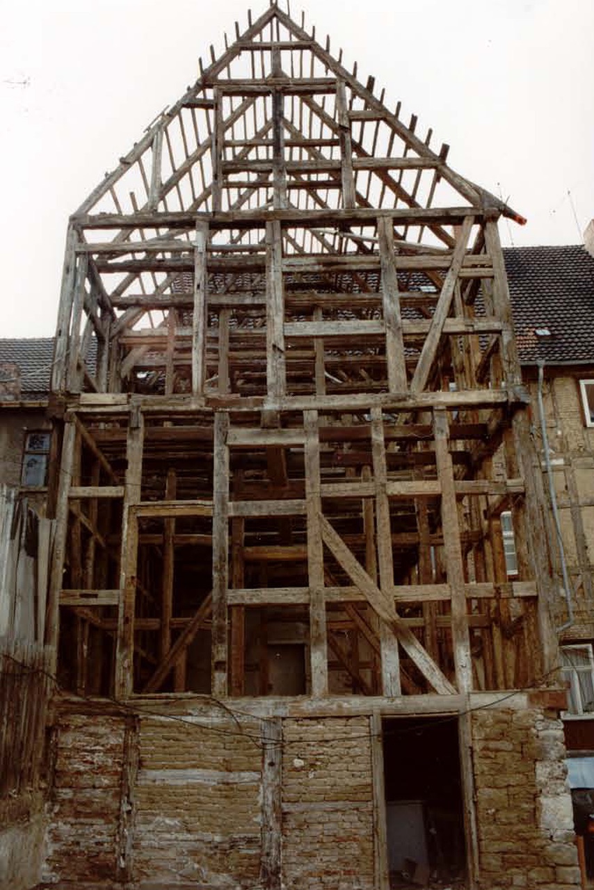 Durch die gemeinschaftliche Planung und Ausführung der Ingenieurgesellschaft Baumgarten, Budszuhn und Gutjahr entstanden auf ca. 950 m² Nettogrundfläche, im Einzeldenkmal aus dem Jahr 1517, zwei Ladengeschäfte, drei Büros und drei Maisonettewohnungen. Das Fachwerkgebäude erforderte von den am Bau beteiligten Handwerksbetrieben eine hohe Kompetenz und innovative Lösungen, um die Auflagen aus dem Wärmeschutz und der Denkmalpflege umzusetzen. Die wiederentdeckte und vollständig erhaltene Bohlenstube ist alljährlich zum Tag des offenen Denkmals für die Öffentlichkeit zugängig.